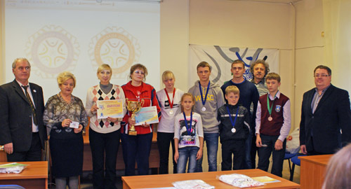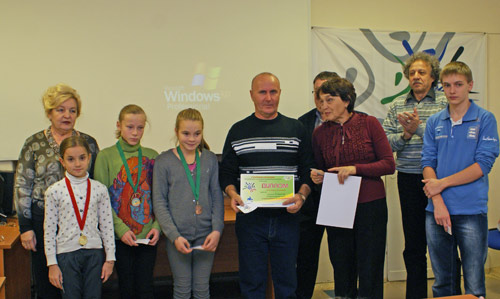 Всего 24 учащихся получили из рук заместителя главы администрации Кириллова С.В. и исполняющей обязанности начальника Управления образования Лазуренко Н.В., проводивших награждение, грамоты, медали, памятные призы: белоснежные футболки с символикой городской спартакиады школьников.